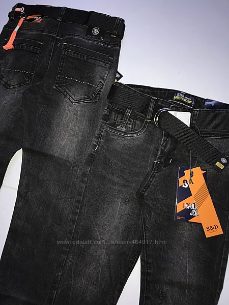 Стильні чорні джинси для підлітківШтанини донизу злегка звужені, в комплекті йде поясок, талія всередині регулюється, м´які.