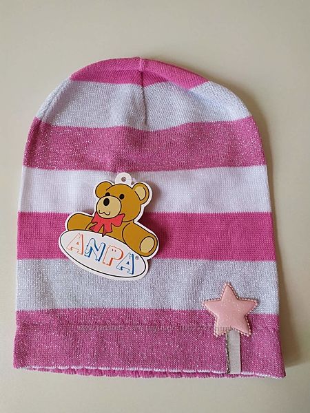 Подробное описание: Шапки одинарные с люрексовой ниткой девочкам Полоска/звезда р.52-54