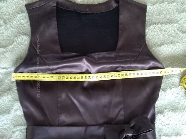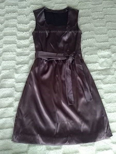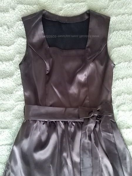 Сарафан пошитий, атласний, з підкладкою, шоколадного кольору. Збоку блискавка. Пояс на гудзиках. На фото є заміри. Як варіант плаття в школу. Повернення не передбачено