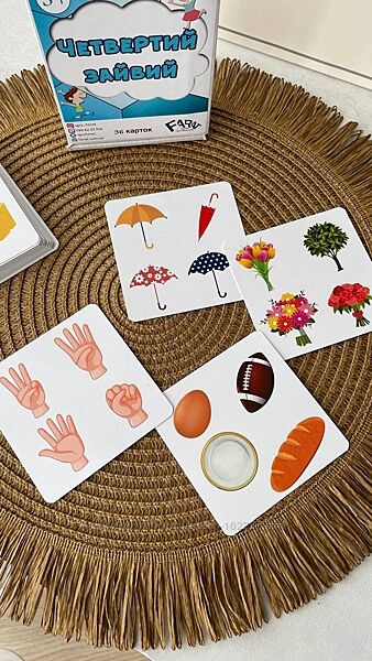 Більше на farat,com,uaЗа допомогою цієї гри ваша дитина навчиться тренувати увагу,пам´ять, логічне та образне мислення, навчиться виділяти схожі та різні риси предметів.