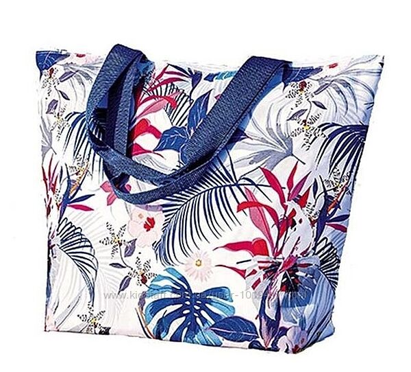 Современный мотив морских волн в контрасте с синими вставками и элегантными бежевыми ручками, подойдёт к любому образу и станет незаменимым помощником во время отдыха.