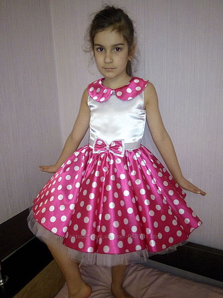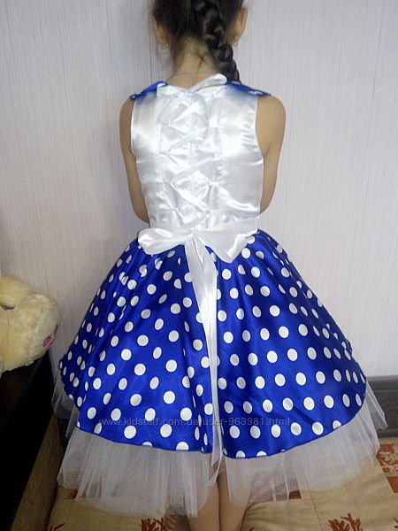 Пышное платье в ретро стиле. Регулируется корсетной утяжкой на спинке. Юбка платья состоит из четырёх фатиновых юбок, подкладка. Платье не нуждается в дополнительном подъюбнике, само по себе очень пышное. К платью можно отдельно заказать бант на голову на заколке или резинке для гульки, либо повязку солоха. Так же перчатки- митенки.Возможен пошив в другом цвете. Размер 30Объем груди 60 см, длина 70 см
