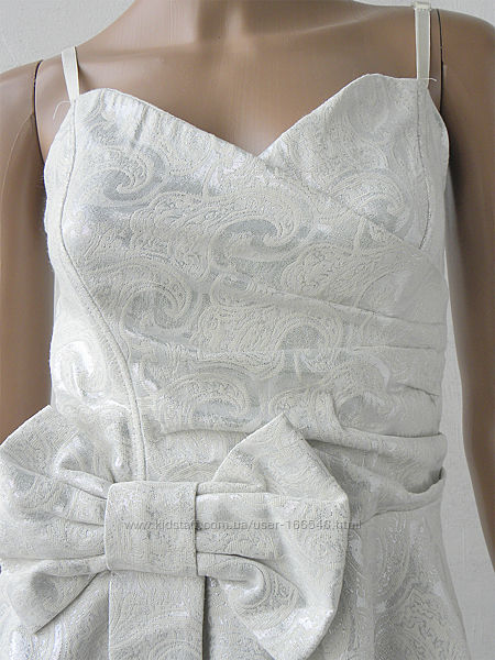Стильне нарядне плаття на бретельках з болеро. Вдала модель та охайно пошите плаття. За рахунок продуманого силуету, виточок та корсетних вставок чудово сидить на фігурі. Зручне та привабливе водночас. На спині є резинка, завдяки чому в грудях трохи тягнеться. Також на спині є шнурівка. Чудова вишукана тканина з сріблястим, блискучим малюнком. Тканина м`яка приємна до тіла, не тягнеться. Від талії йде розширення, тому плаття підходить на різну ширину бедер. Ви будете в захваті! Склад: 75% віскоза, 20% нейлон, 5% еластан.Розмір 36 (євро). Заміри виробу: ПОГ - 37-45 см (+ є виточки для грудей), ПОТ - 35 см, ПОБ - 47+ см, довжина виробу - 91 см.