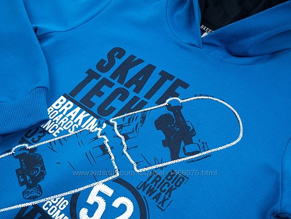 Стильна затишна кофта-худі "SKATE TEСН" для хлопчика.Зручна спортивна трикотажна кофта - худи з капюшоном і довгими рукавами, приємного волошково-синього кольору.