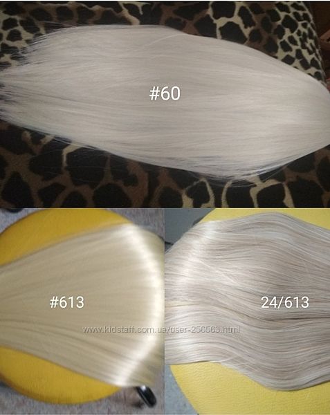 #60 суперблонд , #613 блонд, платиновый блонд #24/60, #16/613 ,светло-песочный #24 /613, холодный тёмный блонд #24, светло-русый золотистый блонд #27/613, чёрный #1В, тёмный шоколад #2,тёмный каштан #4,коркоричневый тёмно русый #8, коричневый с лёгким бордовым оттенком #2/33, коричневый русый 2/30 ... и другие оттенки.