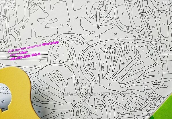 Контейнеры с красками пронумерованы и отвечают тем номерам которые необходимо разукрасить на картине.