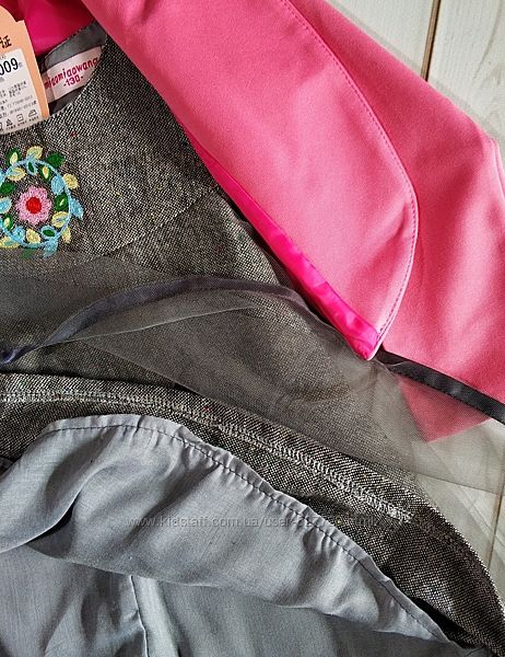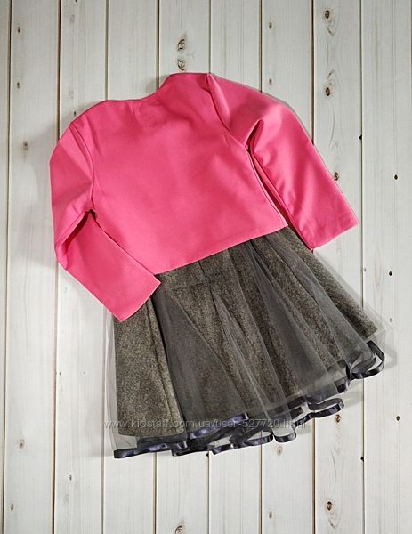 Нарядный костюм для девочки. В комплект входит платье и жакет.Платье на спинке застегивается на потайную молнию . Спереди красивая яркая вышивка. В платье присутствует подкладка из хлопкового материала. А сверху платья идет фатиновая накидка.