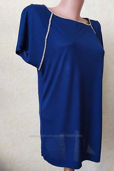 Красивая женская футболка-блуза, декорирована оригинальными камнями -стразами, которые на свете красиво переливаются разными цветами - не пластик, приятная к телу ткань- вискоза, отличного качества, привезена с Германии Абсолютно новая, без бирки - стокЗамеры: ширина под мышками- 50-55см , ширина в талии - 49-55см , длина по спинке-60см , ширина низа-52см -60см
