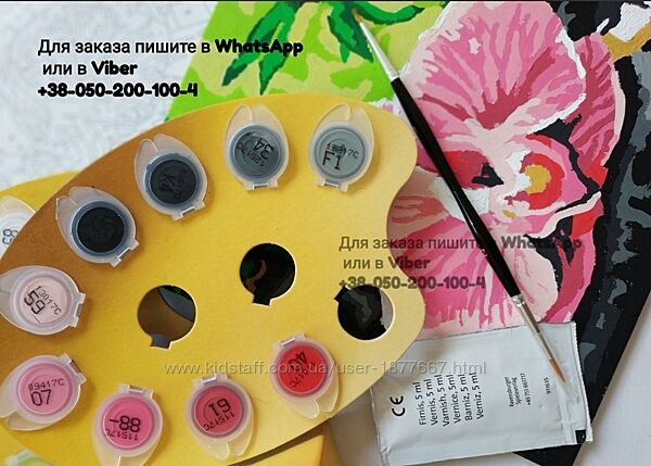 Для рисования картины по номерам в комплект входят специальные краски тех цветов которые необходимы для рисования именно этой картины.