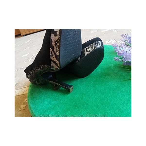Продам очень удобные, оригинальные женские стильные туфли. Натуральная замша, внутри - кожа. Платформа 2 см, каблук 12 см. Состояние отличное.Размер 38, стелька 25 см.