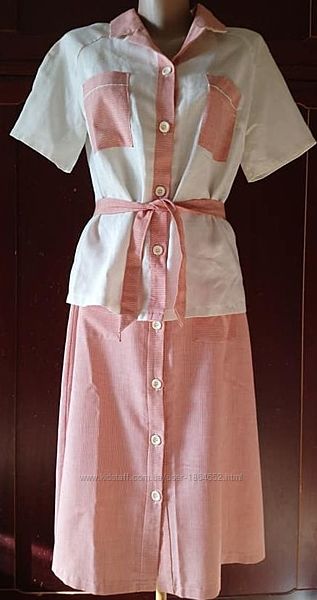 Костюм р.46 бело-розовый жакет и юбка (Венгрия).Белый и тонкая бело-розовая полоска.