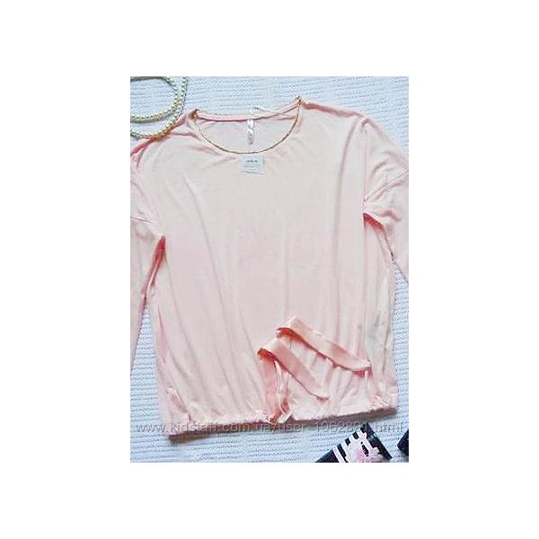 Подробное описание: Лонгслив нежно-розовый с атласным завязками, блуза Terranova