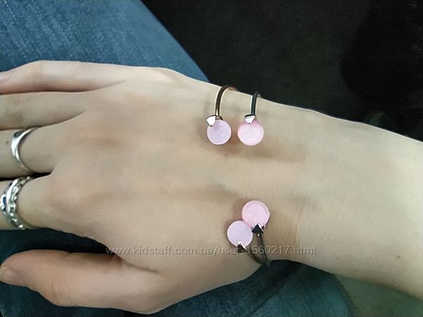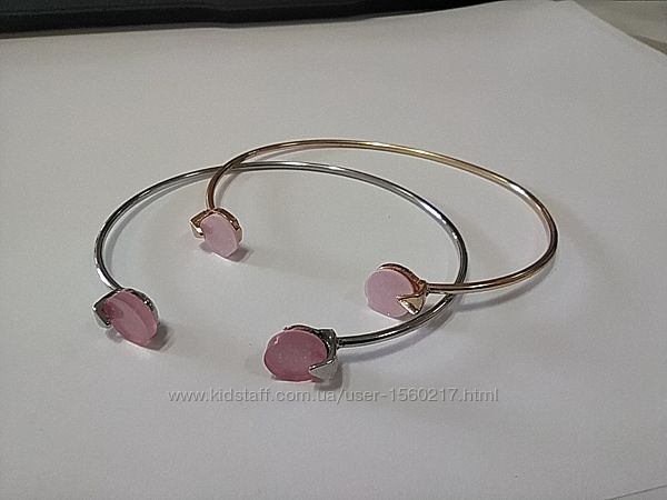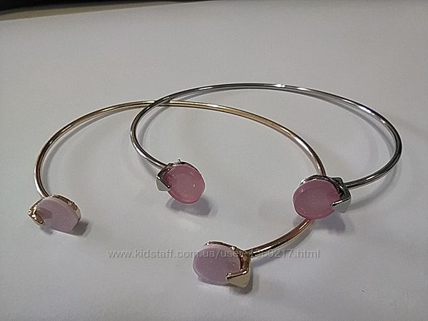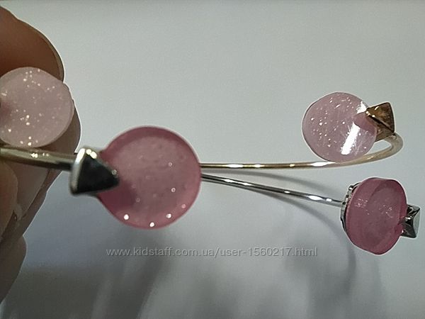Красивые браслеты с розовыми блестящими вставками. Можно носить вместе или по отдельности. Возможна раздельная покупка 40 грн за штуку. Размер 5*6,5 см, браслеты одинаковые по размеру.Состав: Бижутерный сплав, пластик