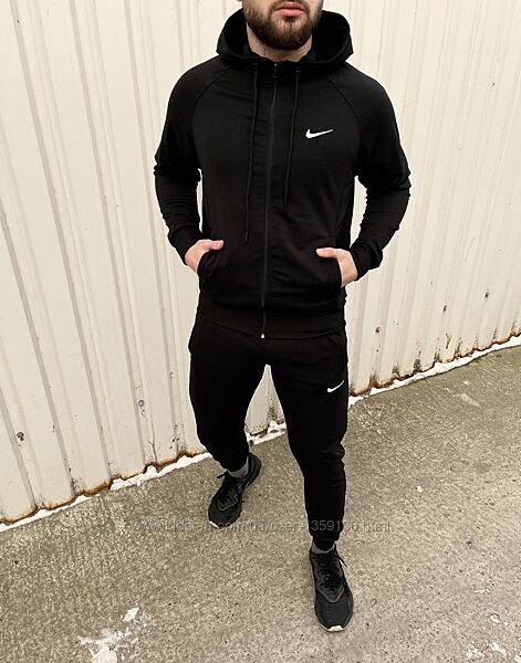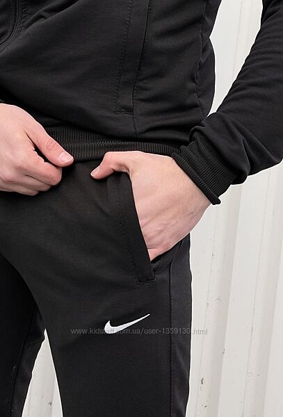 Костюм спортивний з логотипом Nike. Кофта: - Основна тканина: двонитка високої якості - Кофтана на манжеті з рибани. - Є два кармани. - Капюшон не відстібається, регулюється шнурком. - Застібка: змійка блискавка. Штани: - Основна тканина: двонитка високої якості. - Штани на манжеті з рибани. - Є два кармани. - Пояс на резинці, додатково фіксується шнурком.
