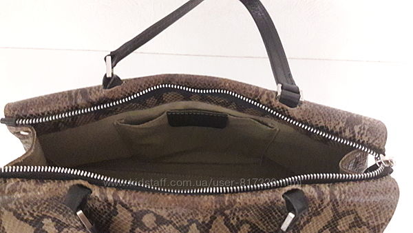 Сумка Carpisa оригинал Италия, натуральная кожа. Снаружи есть два незначительных незаметных дефекта (есть на фото): маленькая царапина и затерт один угол на днище. Карманы накладные наружные сквозные (под дном сумки). Внутри подкладка не прошита и не обверложена. За счет этого в некоторых местах есть нитки по краям ткани подкладки (можно взять ножницы и пообрезать). На подкладке есть несколько точек и полосок от карандаша/ручки. Размеры: высота 23.5 см, ширина 33.5 см, днище 36×13Оплата на карту или наложенный платеж.