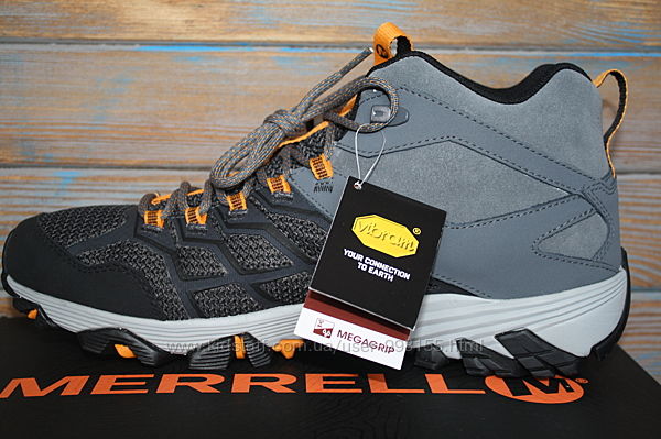 Мужские ботинки Merrell Moab FST 2 Mid Waterproof привезены из США. Оригинал. Новые в коробке, в наличии. Цвет : Castle / Flame9.5 us / 43.5 euro / полная стелька 28 см