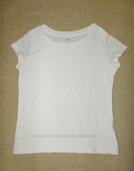 Кружевная футболочка Сarter´s, заказывала с оф. сайта (Америка), размер 5Т (по разм. сетке на рост 105-111 см, вес 17,2-19,1 кг), дочь с таким ростом иносила, смотрите замеры.