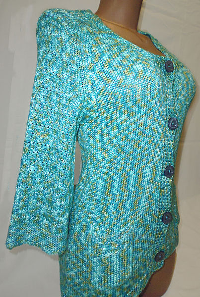 Подробное описание: Меланжевая кофта бирюзового цвета.