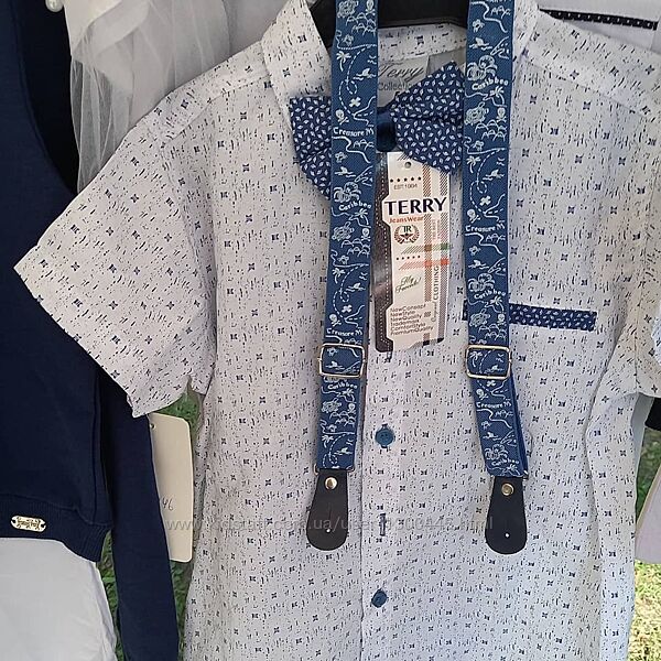 Костюм : сорочка, штани, підтяжки і метелик Виробництво Туреччина матеріал Трикотаж Якість(like) Вік 5 , 6 Ріст 110, 116 Кількість обмежена