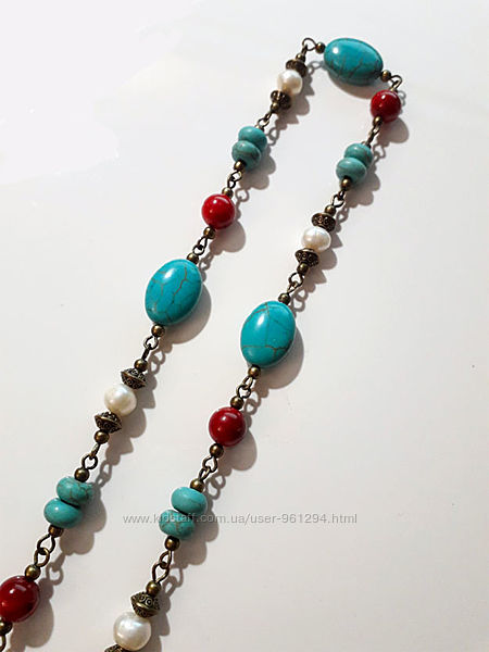 Подробное описание: Ожерелье жемчуг, бирюза, коралл