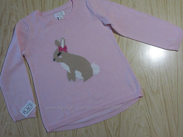 Продам наш любимый свитерок известной американской фирмы Childrens Place. В идеальном состоянии. Размер 4Т. Оригинал . Заказывали с США. Нежно розового цвета с зайчиком. Свитерок полностью соответствует фото.Размер: 4T/98-106cm