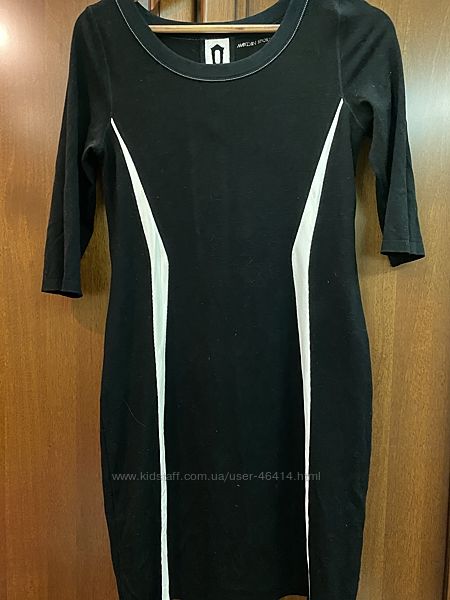 Платье Marc Cain оригинал Очень интересный дизайн: во первых стройнит за счёт контрастных боковых полос, во вторых дразнит воображение за счёт интересного принята на спинке в виде застёжки молнии Размер 3 ( идёт на S- М) Замеры: полуобхват в груди - 40 ( тянется до 48) , талия - 37 ( тянется), бёдра - 44 ( тянется до 52), длина платья -90, длина рукава -38 ( рукав три четверти) Состояние отличное 690 грн