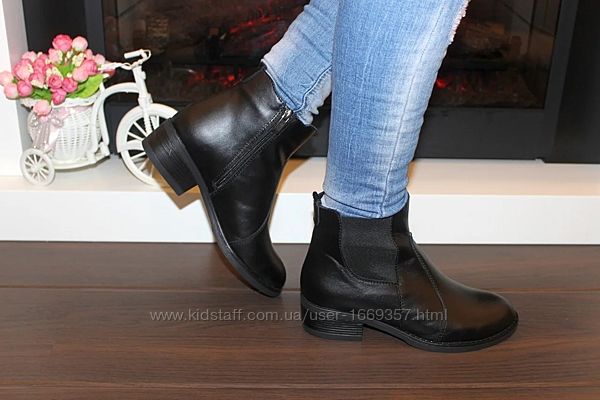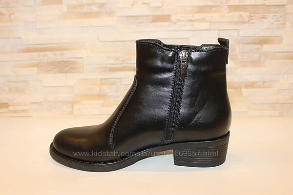 Ботильоны женские черные натуральная кожа на небольшом каблуке Д640