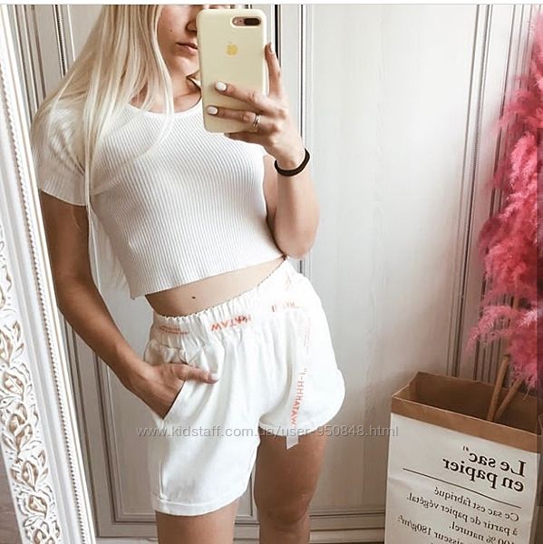 Подробное описание: Базові котонові жіночі білі шорти з прозорим поясом розмір S