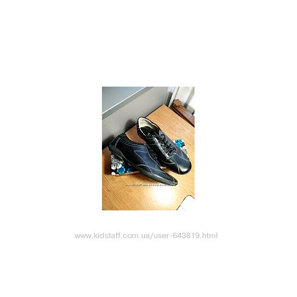 Туфлі для дівчинки в новому стані, спортивного типу, дуже зручні, шкода, що виявилися малі. Один раз намагалися одягати. Розмір 37р. устілка 23,5. Всередині натур.шкіра, верх дуже схожий на натур.шкіру. Підуть на вузьку і середню ногу, легкі, зручні.Були одягнені 1раз.
