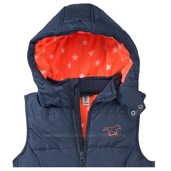 Жилет для девочки Topolino.Оригинал. Германия.Размер 122 и 128.Утепленный изософтом, плотная ткань.Цвет синий. Подкладка флисовая, оранжевая в белые звезды.Капюшон на кнопках, отстегивается.Карманы на липучках.Воротник стойка.Теплый, стильный, хорошего качества жилет.Спинка удлиненная.В Киеве примерка. Обмен на другой размер.