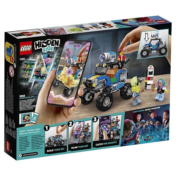Конструктор Lego Hidden Side 70428 Пляжный багги Джека Лего Хидден СайдВорвись на Скрытую сторону на пляжном багги Джека, чтобы сыграть в захватывающую одно- или многопользовательскую игру в дополненной реальности! Собери этот крутой багги, дополненный минифигурками Джека, Паркер и одержимого двухголового Скотта Фрэнсиса. Затем загрузи бесплатное приложение дополненной реальности Hidden Side и наведи своё смарт-устройство на модель, чтобы увидеть заколдованный мир. Побеждай призраков, ищи подсказки и сразись с самым главным привидением — Такером Дэйлом, чтобы спасти город!