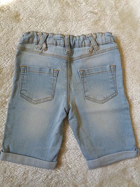 Джинсовые, удлинённые шорты (MONSOON), красивого голубого цвета, на 5-7 лет.Замеры: общая длина по боковому шву - 38 см;