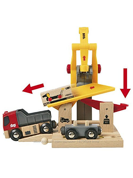 Вантажна станція Brio 33280 дозволяє здійснювати перевантаження різних вантажів із залізничних вагонів на вантажівки Brio. За допомогою магнітної муфти вантаж захоплюється стрілою крана та переміщується з вагона на платформу, з якої, у свою чергу, вантаж потрапляє в автомобіль. У автомобіля відкидається кабіна для ремонту двигуна та підіймається кузов.Ця станція буде чудовим доповненням до будь-якого набору залізниць Brio, Hape, Lillabo (Ikea), Melissa and Dough, Eichhorn та ін.