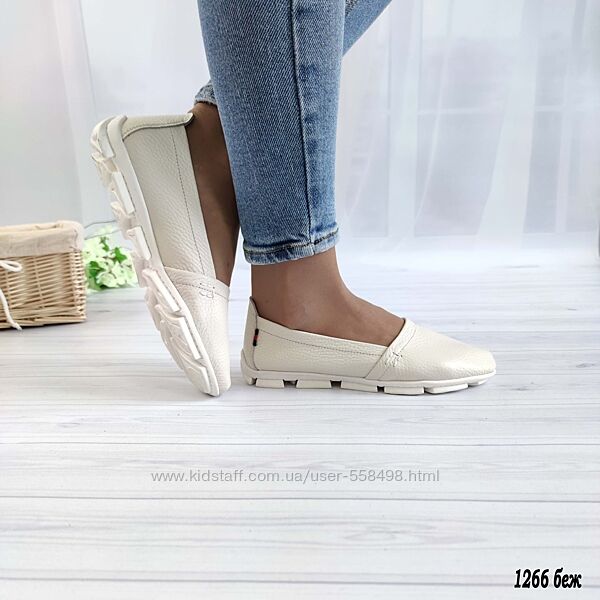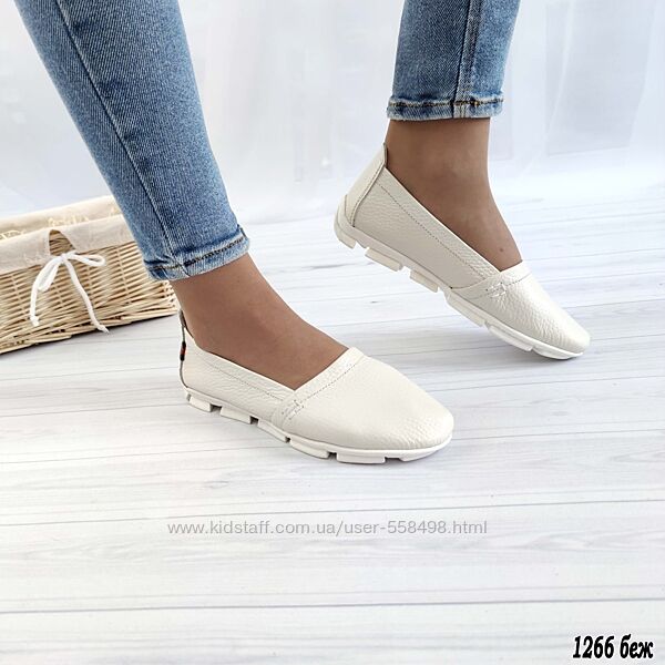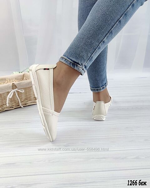 Подробное описание: Женские кожаные мокасины светло бежевые