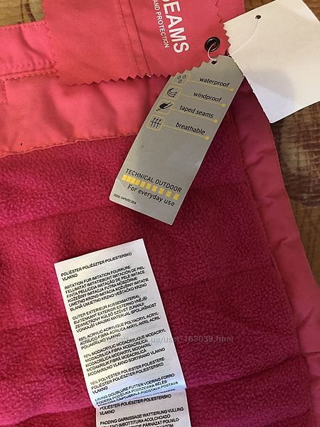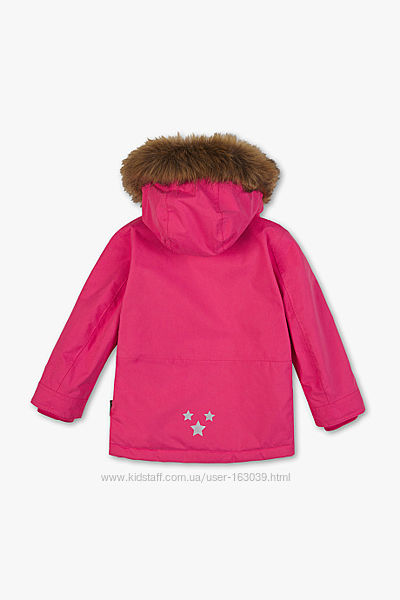 Ветронепродуваемая и влагонепроницаемая ткань, проклееные швы, внутренние манжеты для защиты от снега и ветра, защита подбородка, утеплена флисом. Капюшон не отстегивается, мех на капюшоне отстегивается. Большое количество светоотражающих элеиментов
