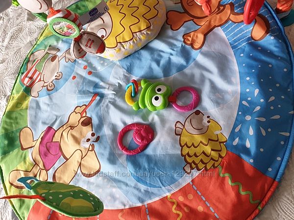 Центр мягкий игровой Bubble Gym Chicco Мягкий игровой центр Bubble Gym — идеальное место, где малышу будет интересно играть и просто отдыхать, это привлекательный яркий коврик со съемной дугой, множеством подвесных игрушек (пластиковые прорезыватели для зубов, зеркальце, погремушки) и мягкой подушкой в форме забавного ежика. Электронная активная панель – это множество разнообразных световых эффектов, 25 минут музыки и звуковых эффектов. Также есть возможность подключения к коврику mp3-плеера. Возраст: с рождения.Другие объявления продавца