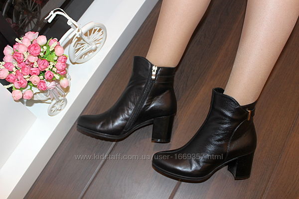 Подробное описание: Ботильоны женские черные на устойчивом каблуке натуральная кожа Д646