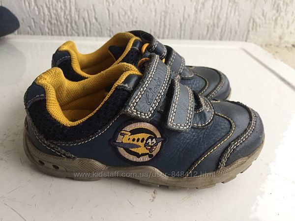 Clarks - это международный бренд с почти 200-летней традицией и британскими корнями. Обувь Clarks разработана в соответствии с последними тенденциями моды, при этом принимая во внимание то, что наиболее важно - комфорт, качество и долговечность обуви. Благодаря этому Clarks признан во всем мире как марка, которая предлагает удобство в широком спектре современных дизайнов.Детские фирменные кроссовки, оригинал. Кожа. При ходьбе мигает свет на внешней стороне подошвы, в области пятки. Застёгиваются на липучку. Цвет тёмно-синий