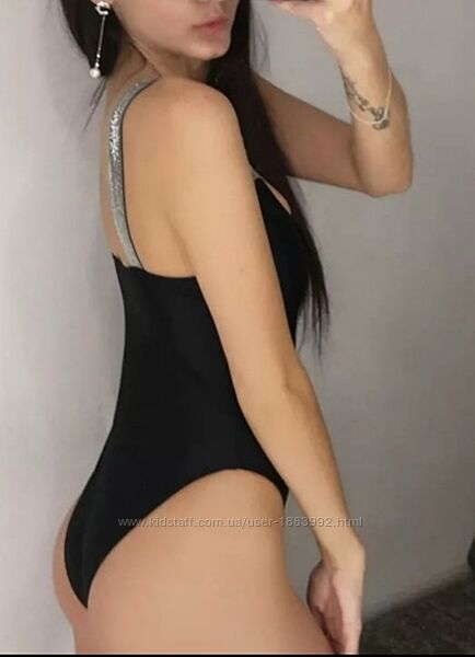 Подробное описание: Стильный сдельный купальник с серебряными бретелями