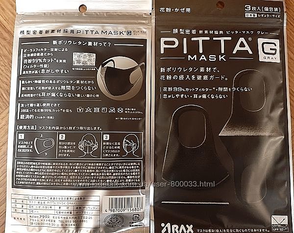 - упаковка Pitta Mask Gray с кодом Японии (маски на среднее/широкое лицо)