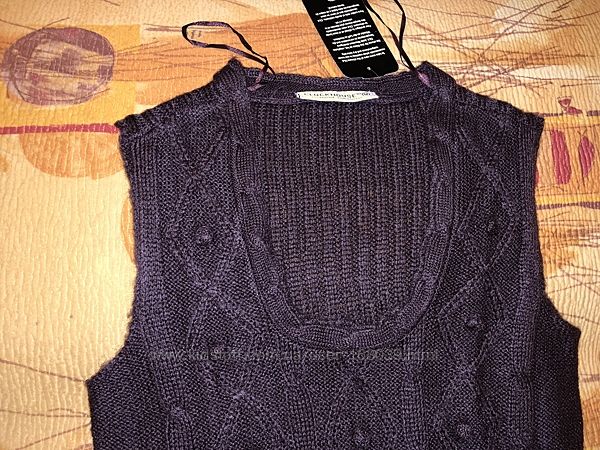 Мягкая и удобная жилетка для женщин с интернет-магазина C&A Жилетка вишневого цвета, Состав 100% акрил. Удлиненная молодежная модель. В талии шнуровка для подчеркивания талии Размеры S, M Замеры р-ра S: