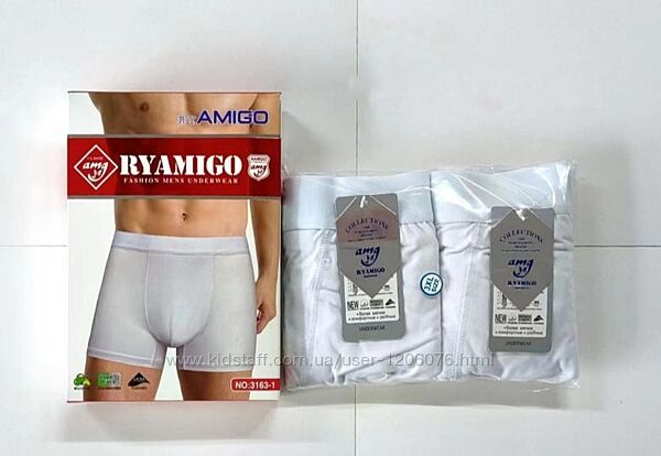 Фабричні труси чоловічі Amigo в асортименті. Склад тканини: 80% cotton, 15% bamboo fiber, 5% spandex. Розмірний ряд: - XL - гумка 34 см; - 2XL - гумка 36 см; - 3XL - гумка 38 см; - 4XL - гумка 40 см. Так як виріб трикотажний і еластичний можуть бути відхилення +/- 1 см.