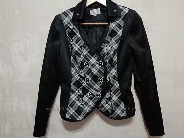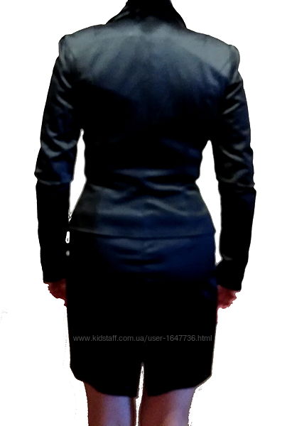 Гарний, елегантний костюм із міні спідницею. Підійде і як офісний варіант, і як вечірній. Матеріал щільний, трохи блискучий, трохи стрейчевий. Стан нової речі. Розмір 46. Піджак: НОГ - 48-50 см НОТ - 39 см Плечі – 38 см Рукав - 62 см Спідниця (на підкладці): НОТ - 35 см НОС - 45 см Довжина – 45 см