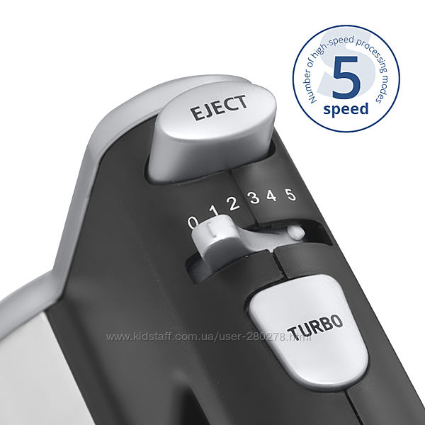 Мощность — 350 W , позволяет не только взбивать и смешивать компоненты жидкой консистенции, но и замешивать любое тесто.