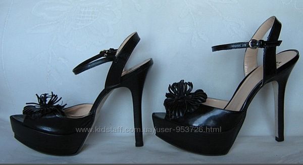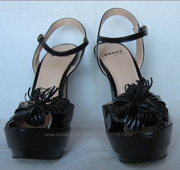 Стильные черные босоножки BRONX натуральная кожа, р.38,5 на платформе и высоком каблуке.На узкую ногу.