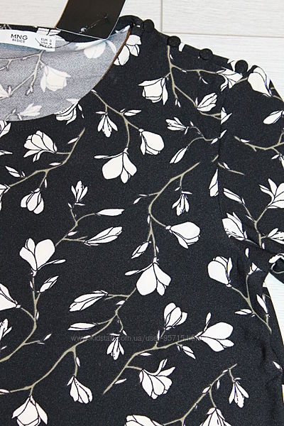ОПИСАНИЕРасклешенный фасон. Эластичная ткань. Принт. Круглый вырез горловины. Длинные рукава. На плече застежка на пуговицы.