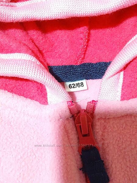 Тепла і м´якенька флісова кофта.Розмір 62-68: довжина 30.5 см, груди 28 см, талія 27 см, низ 25 см, рукав 23 см.
