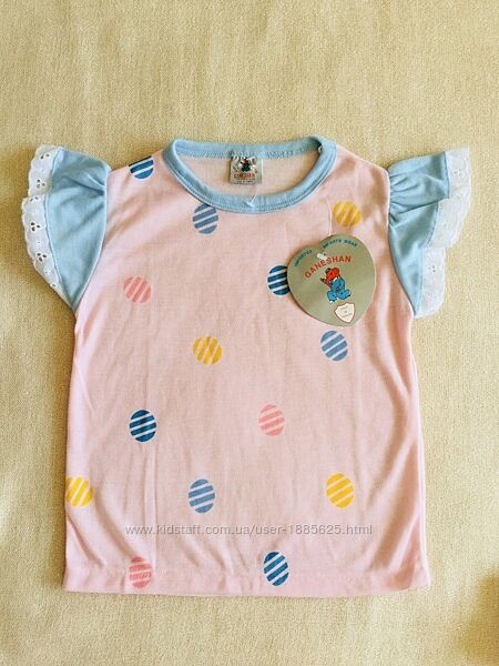 Комплект из брендовых футболочек на лето. Тонкий Трикотажик. Яркие воздушные рукавчики- крылышки из прошвы.Покупала набор за 320 грн осенью на лето, увы, за зиму переросли.