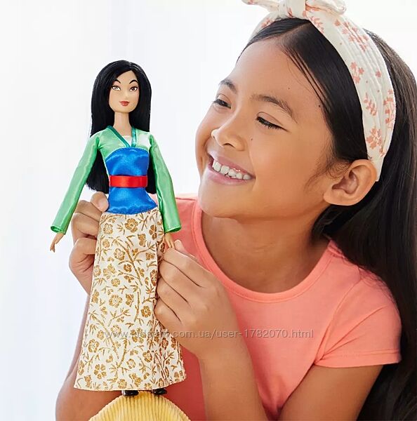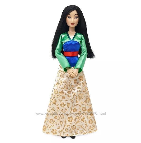Классическая кукла Мулан от DisneyКостюм куклы Мулан состоит из атласной юбки с филигранным сверкающим цветочным узором, атласный пояс и лиф