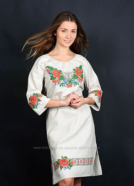 Очень классное платье вышиванка с пояском от ТМ Вышиванко. Размер 42 (S)Цвет- беж